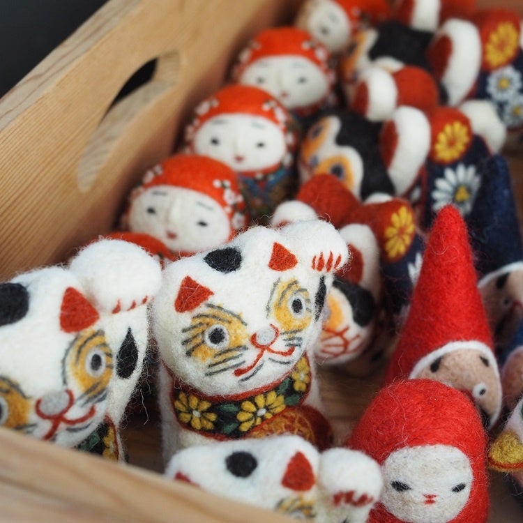 干支の置物、だるま、獅子頭、カラフルな各地の伝統こけしや招き猫。見ているだけで心和む、羊毛作家 ウエダマリコさんの作品たちを、新しい年を迎えるためのアイテムとして暮らしのなかに取り入れてみませんか。