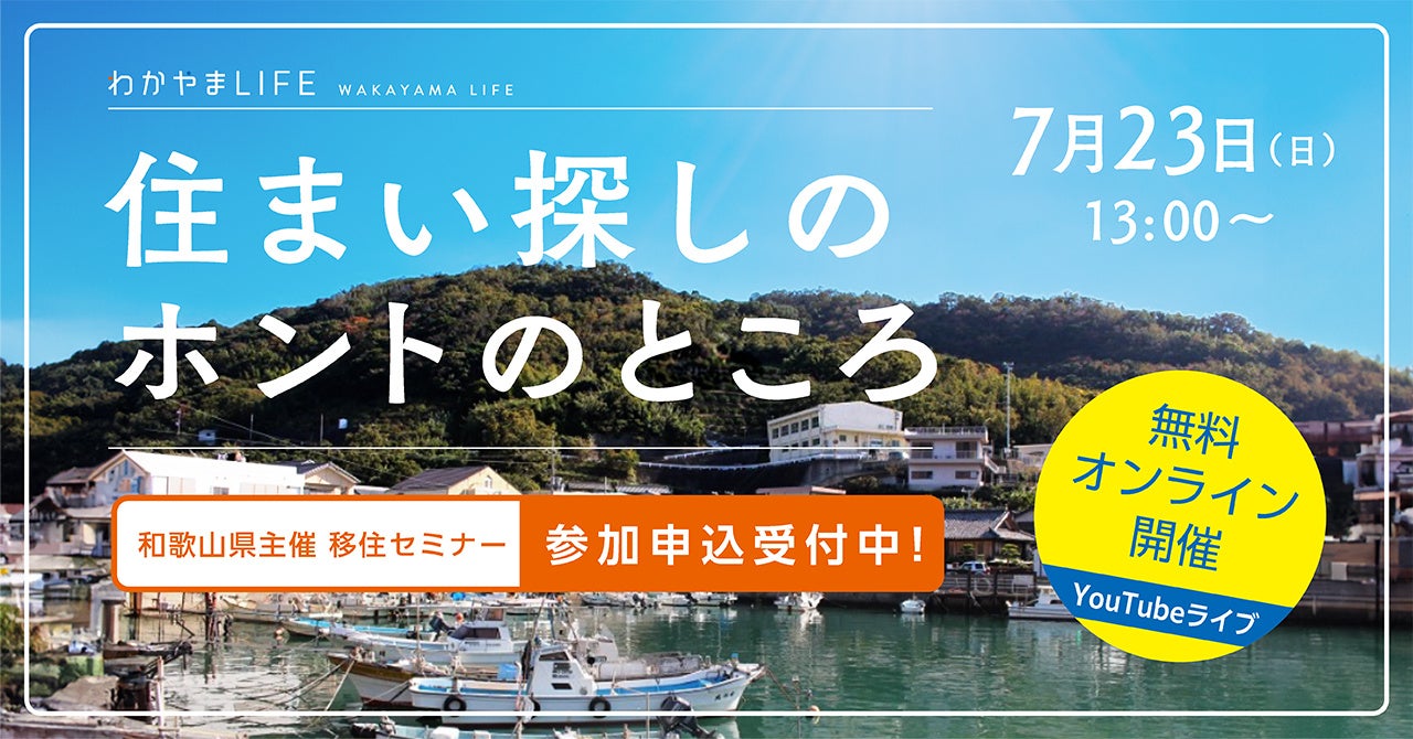 住まい探しのホントのところ ~和歌山県に行って聞いてきました~【和歌山県主催】オンラインイベント7月23日13時から開催