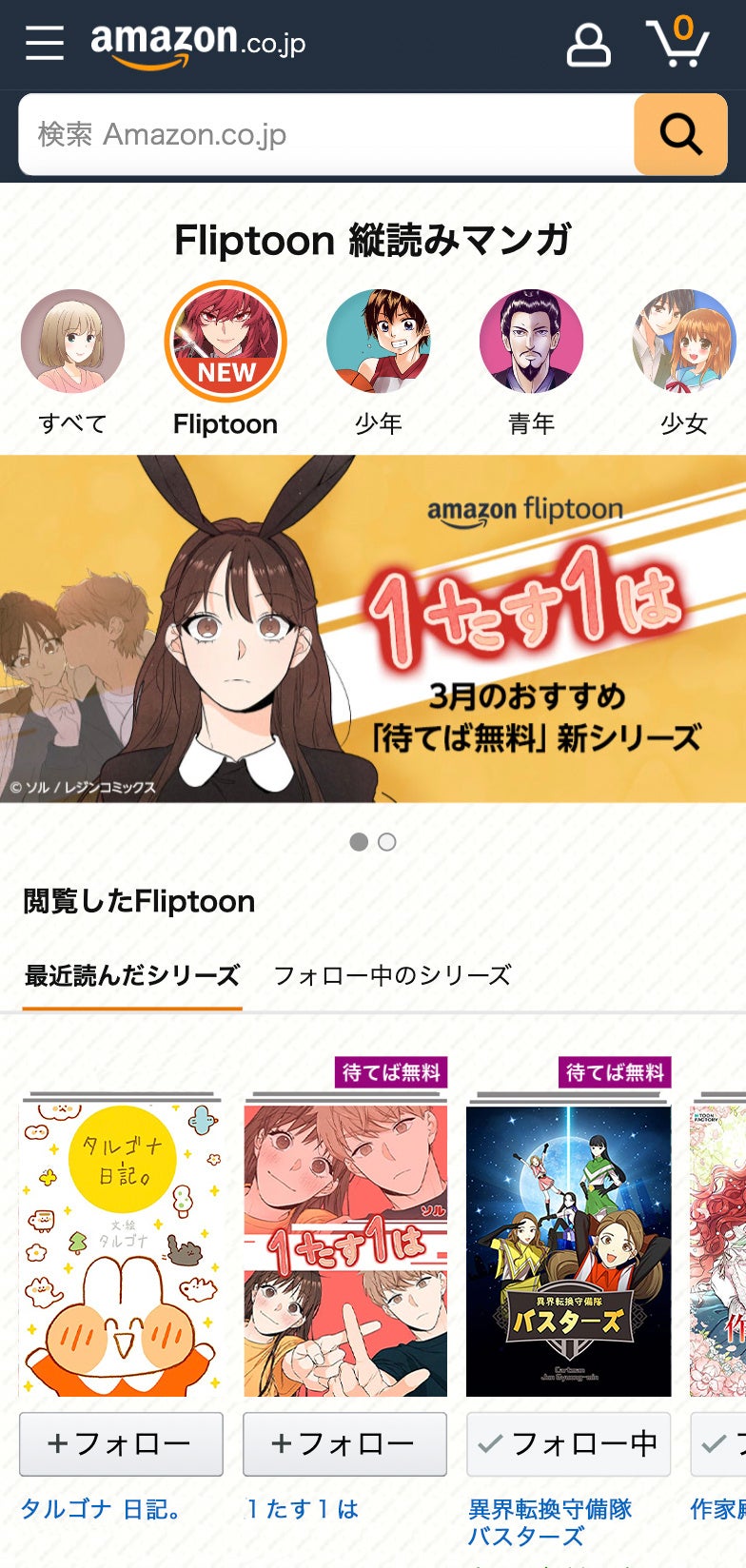 ※「Amazon Fliptoon」はAmazonショッピングアプリやKindle無料アプリではご利用いただけません。