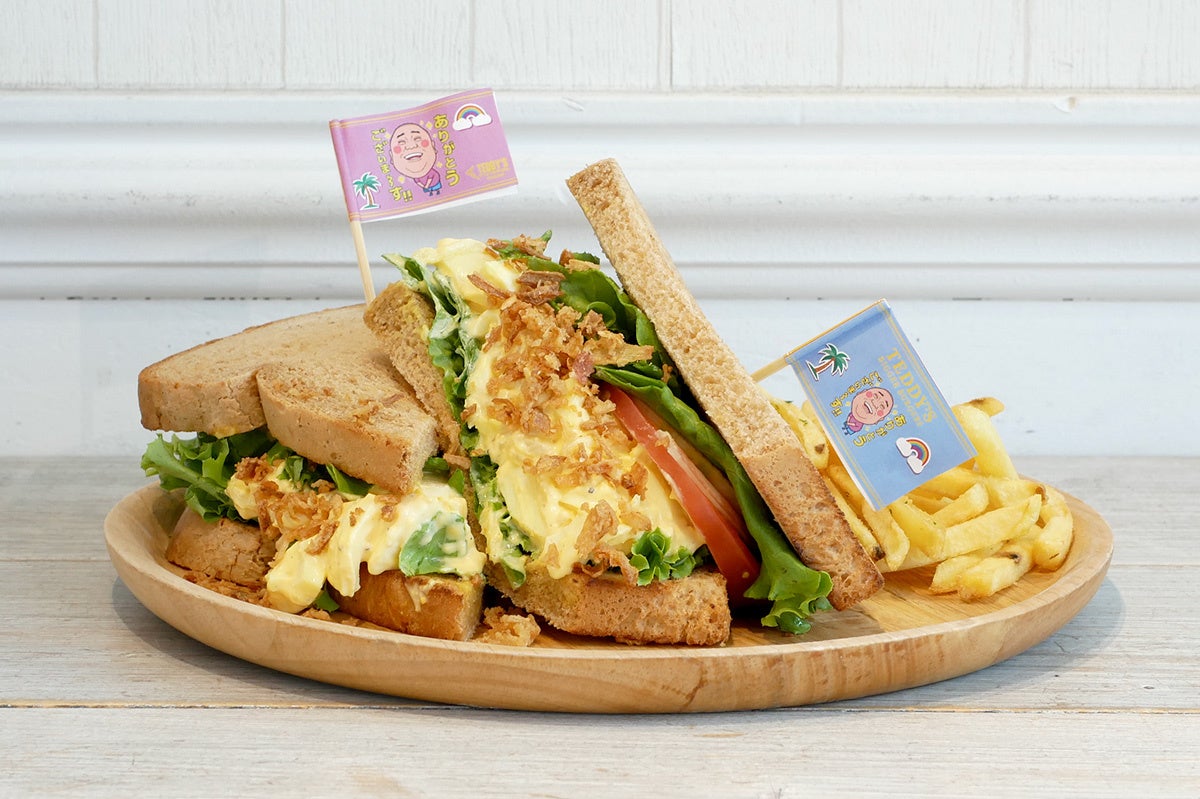 「けいちょん」こと極楽とんぼの山本圭壱さんプロデュースによるコラボ「ザ・スマッシュドエッグバーガー」は、たくあんをアクセントに効かせた自家製エッグサラダと、ジューシーに焼き上げた100%ビーフのパティの贅沢なハーモニーが楽しめる一品。