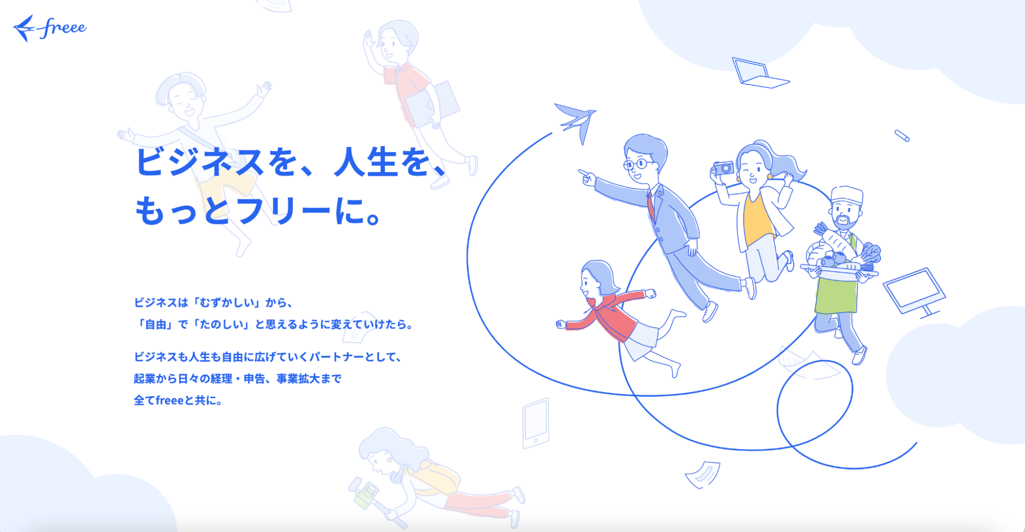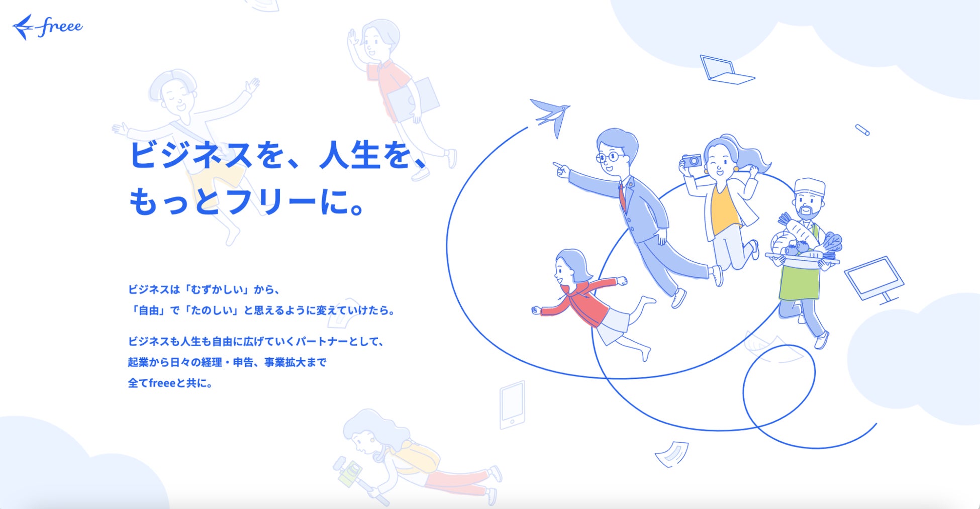 フリー株式会社(本社:東京都品川区、CEO:佐々木大輔)は、この度、freeeの提供する20以上のプロダクトを通じて、ビジネスの“むずかしい”を“たのしい”と感じてもらえるよう、開業・起業にまつわるあらゆるサポートを紹介する特設サイト「ビジネスを、人生を、もっとフリーに。」を公開しました。