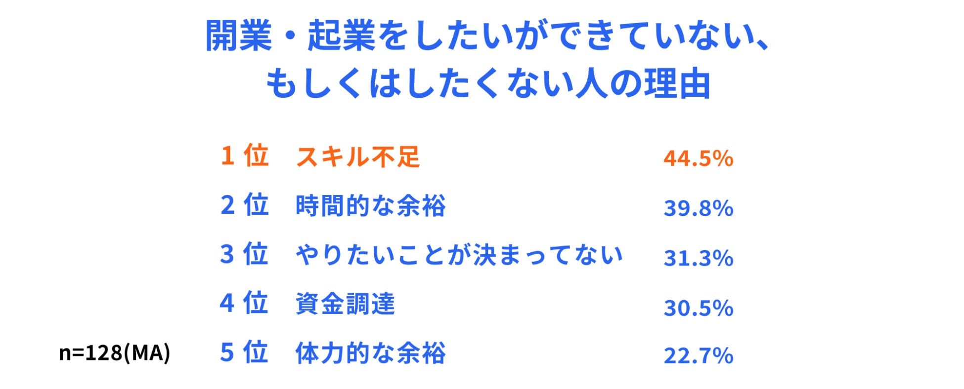 ・開業・起業をしたいができていない人の理由ランキング1位は「スキル不足」