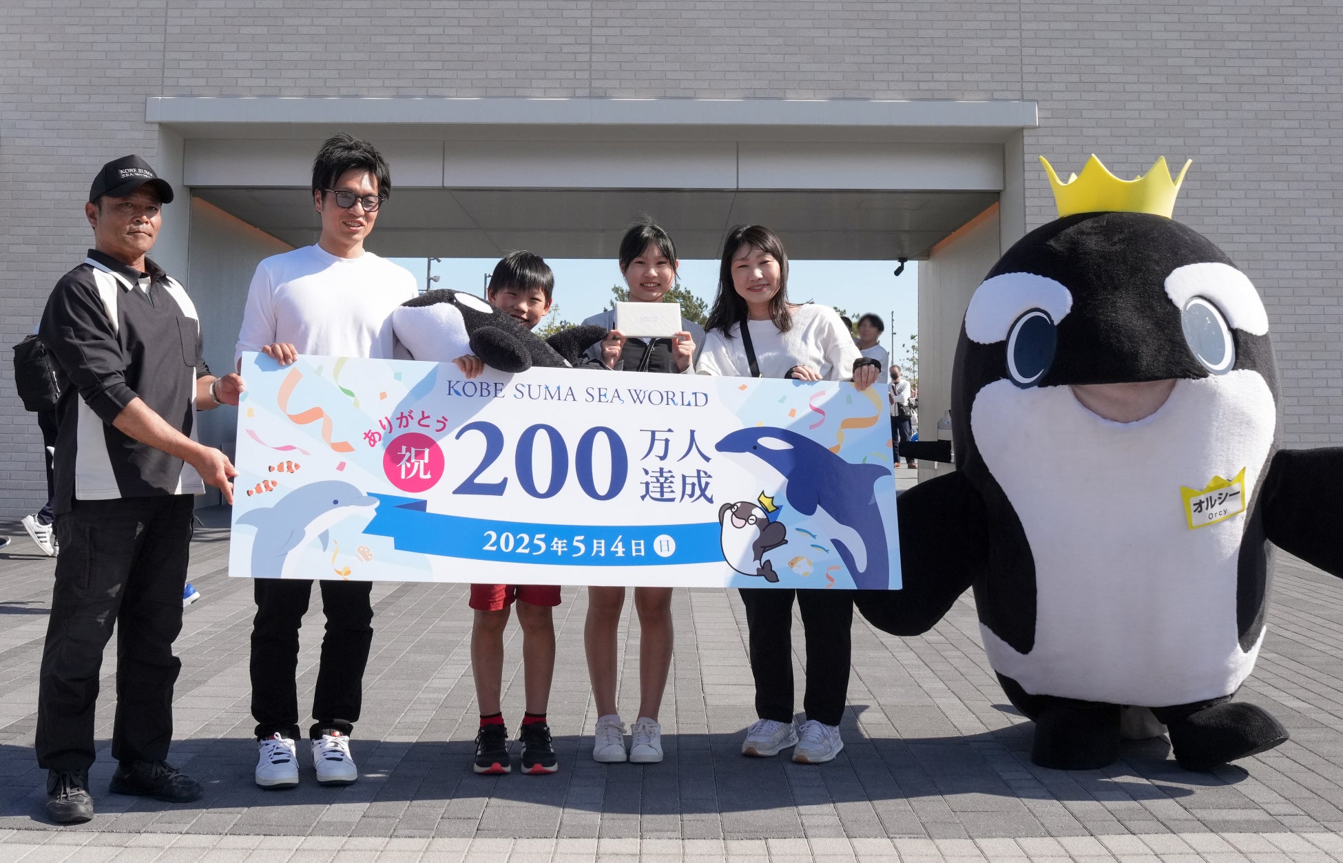 神戸須磨シーワールドは2024年6月1日にグランドオープンし、西日本で唯一シャチの展示を行う水族館として神戸市民の皆様はもとより、全国各地から多数のお客様にご来館いただいております。この度当館は、開業から約11カ月経過した2025年5月4日(日)に来館者数200万人を達成いたしました。