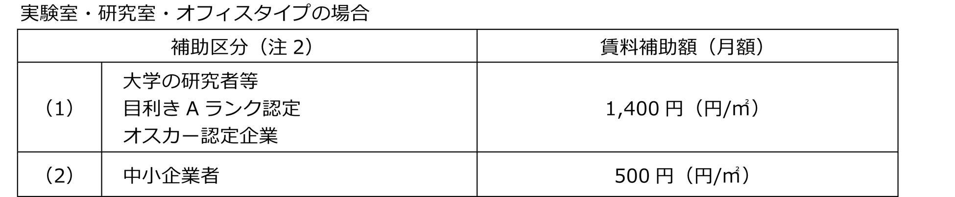 (注2)「目利きAランク認定」「オスカー認定企業」は、優良企業等を認定する京都市の制度です。補助区分の適用・交付期間・補助額等は、京都市新事業創出型事業施設活用推進事業補助金交付要綱に基づき決定されます。