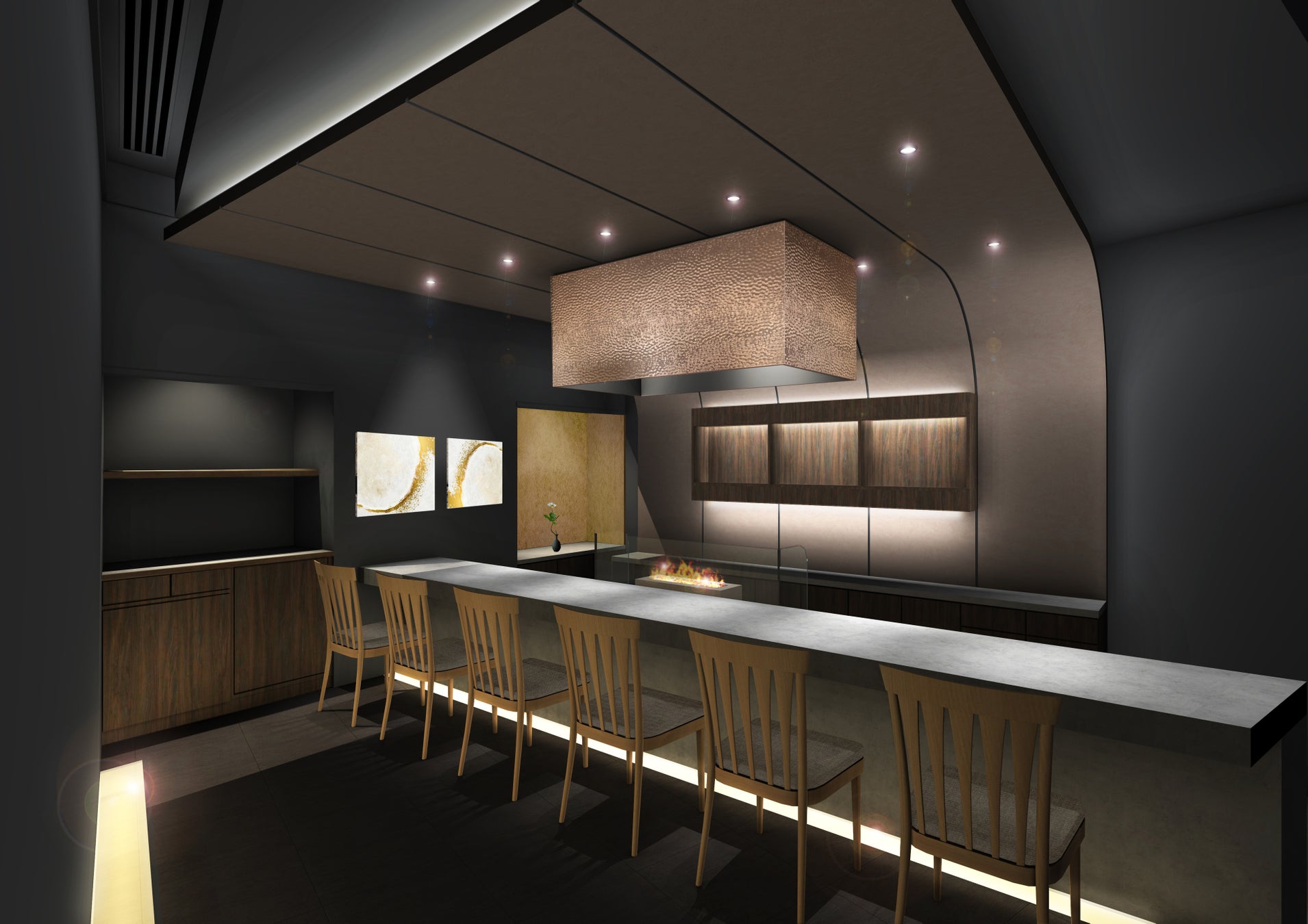 2018年まで、日本料理 かいらん亭内の寿司カウンターとして営業していたスペースをリノベーション。新たなホテルレストランの形として、“炭火割烹スタイル”による完全予約制の劇場型プライベートレストランとしてオープンします。
