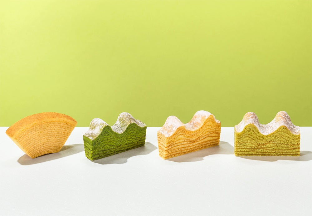 上質な味わいはそのままに、食べやすく上品なひとくちサイズのバームクーヘンです。2つの代表作『マウントバーム しっかり芽』『ストレートバーム やわらか芽』、最新作『ピスタチオ香るマウントバーム』、芳醇宇治抹茶⾹る『マウントバーム お抹茶』、4種の美味しさが勢ぞろい。