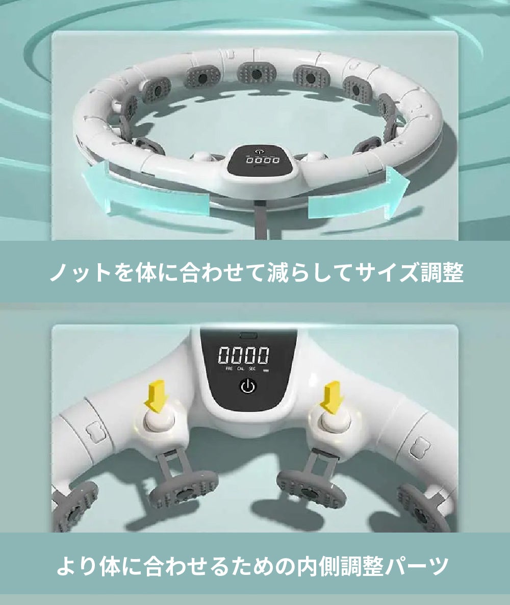 ●お腹のシェイプアップに最適、楽しくお家トレーニングができるスマートフラフープ