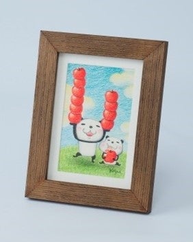 〈大月かずみ〉原画「リンゴとパンダ」(縦22×横17×奥行2.2cm) 11,000円