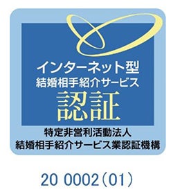 「インターネット型結婚相手紹介サービス業認証制度」は、「結婚相手紹介サービス業認証機構」が、婚活サービス全体の信頼性の確保とインターネット型結婚相手紹介サービスの一層の普及に向けて、消費者が安心してサービスを利用できるようになることを目的に2020年7月に新設されました。