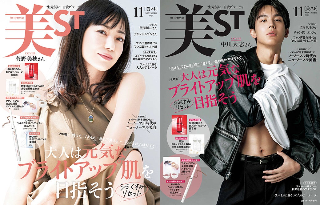 『美ST』11月号は、菅野美穂さんと初登場の中川大志さんのW表紙! ほぼ現品のアイライナーを含む豪華付録で話題沸騰
