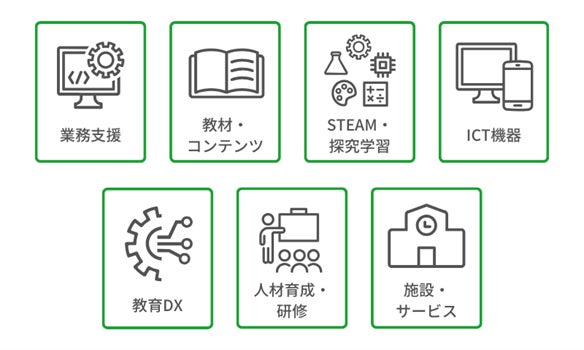 学校・教育機関、企業の人事・研修部門などの方に向けた日本最大級の教育分野の展示会です。年に2回、東京ビッグサイト、インテックス大阪で開催。教育現場の課題に合わせ、業務支援、教材・コンテンツ、探究学習・STEAM教育、ICT機器、教育DX、人材育成・研修、施設・サービスの7つのエリアで構成しています。