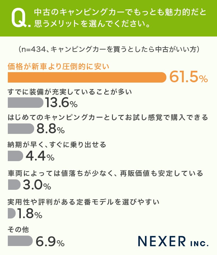 質問5:中古のキャンピングカーでもっとも魅力的だと思うメリットを選んでください。