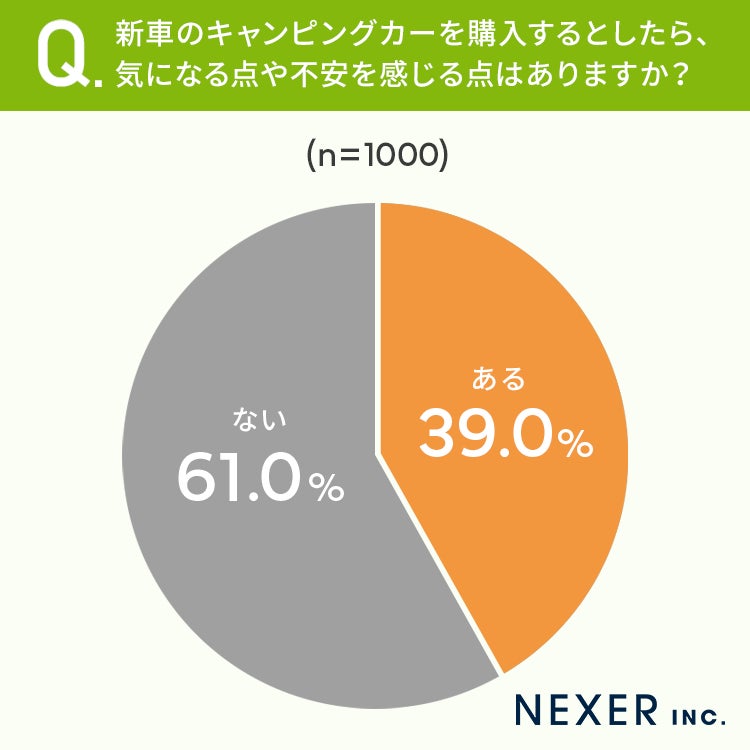 39%の方が、新車のキャンピングカーに気になる点や不安を感じる点があると回答しました。