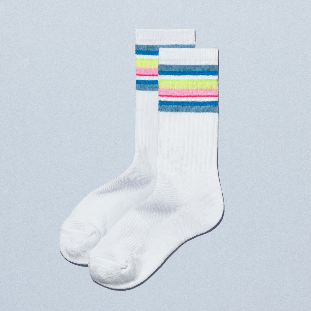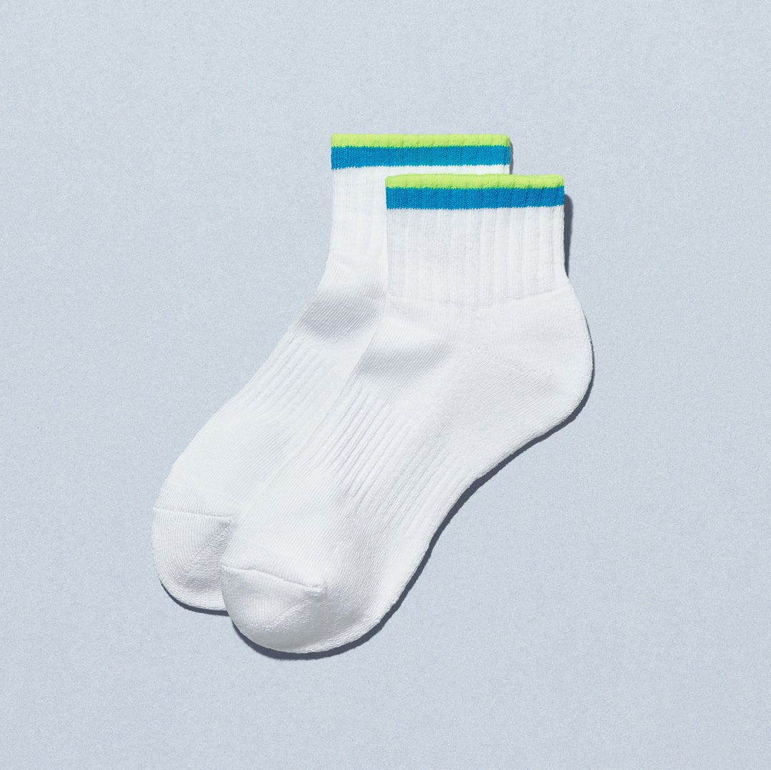 【内容】男女兼用のラインソックスです。25年春夏のシーズンカラーを配色しました。足底はパイル編みの肉厚仕様です。抗菌防臭加工でニオイにくい仕様です。