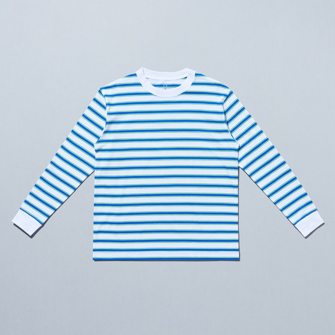 【内容】USAコットン素材を使用したアウターTシャツです。肩の落ち感やステッチ幅など細部にまでこだわって作り上げました。ファミリーマートのコーポレートカラーをボーダーで表現し、一枚で着ても、アウターのインナーとしても、春のコーディネートのアクセントに活躍します。抗菌防臭加工でニオイにくい仕様です。