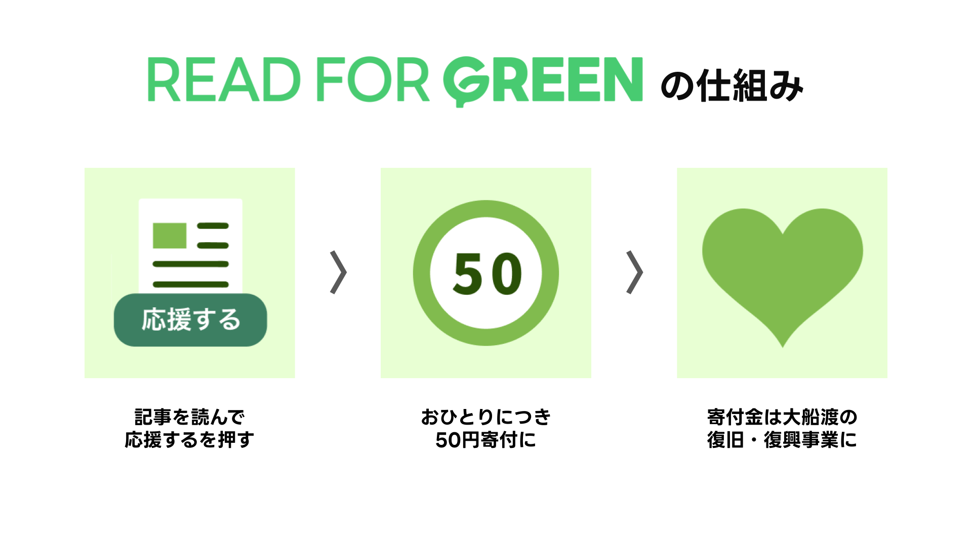 記事を読了し、「応援する」ボタンをクリックしたユーザーひとりにつき50円を大船渡市の復旧・復興事業に寄付