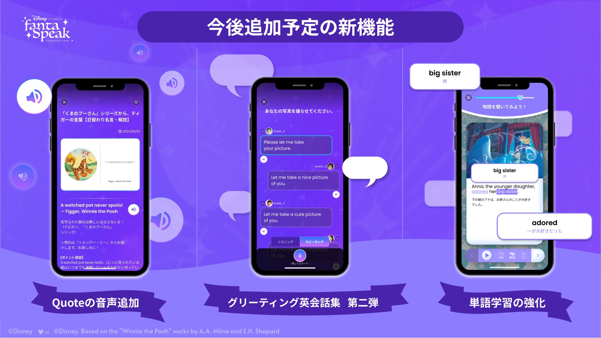 引き続き「ディズニー ファンタスピーク」は、今後もユーザーの皆さまの声をもとに、アプリの改善、新規機能の開発を進めてまいります。