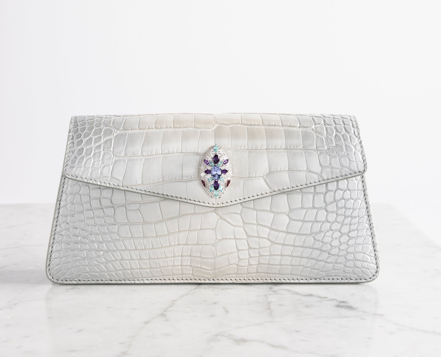 比類なき芸術性と匠の技を駆使し、ブルガリはその名高い美学と技術をアクセサリーの世界にも広げ、卓越したディテールと魅力で心をとらえるよう、ひとつひとつ丁寧にデザインされたハイジュエリー バッグの類いまれなコレクションを発表します。ブルガリのアクセサリー クリエイティブ ディレクター、メアリー・カトランズのビジョンの下で生み出されたこのコレクションは、印象的なシェイプのバラエティー豊富なラインナップを展開します。エキゾチックスキンと、ペンダントにもなる取り外し可能なジュエリークロージャーを調和させ、ひとつひとつが「ポリクロマ」がかかげる唯一無二な色彩のハーモニーのテーマを反映しています。「セルペンティ」、「モネーテ」、「ディーヴァ ドリーム」といったブルガリのアイコニックなモチーフが美しさと芸術性を象徴する時代を超えたシンボルとして登場し、ブランドが誇るクラフツマンシップのレガシーを体現します。