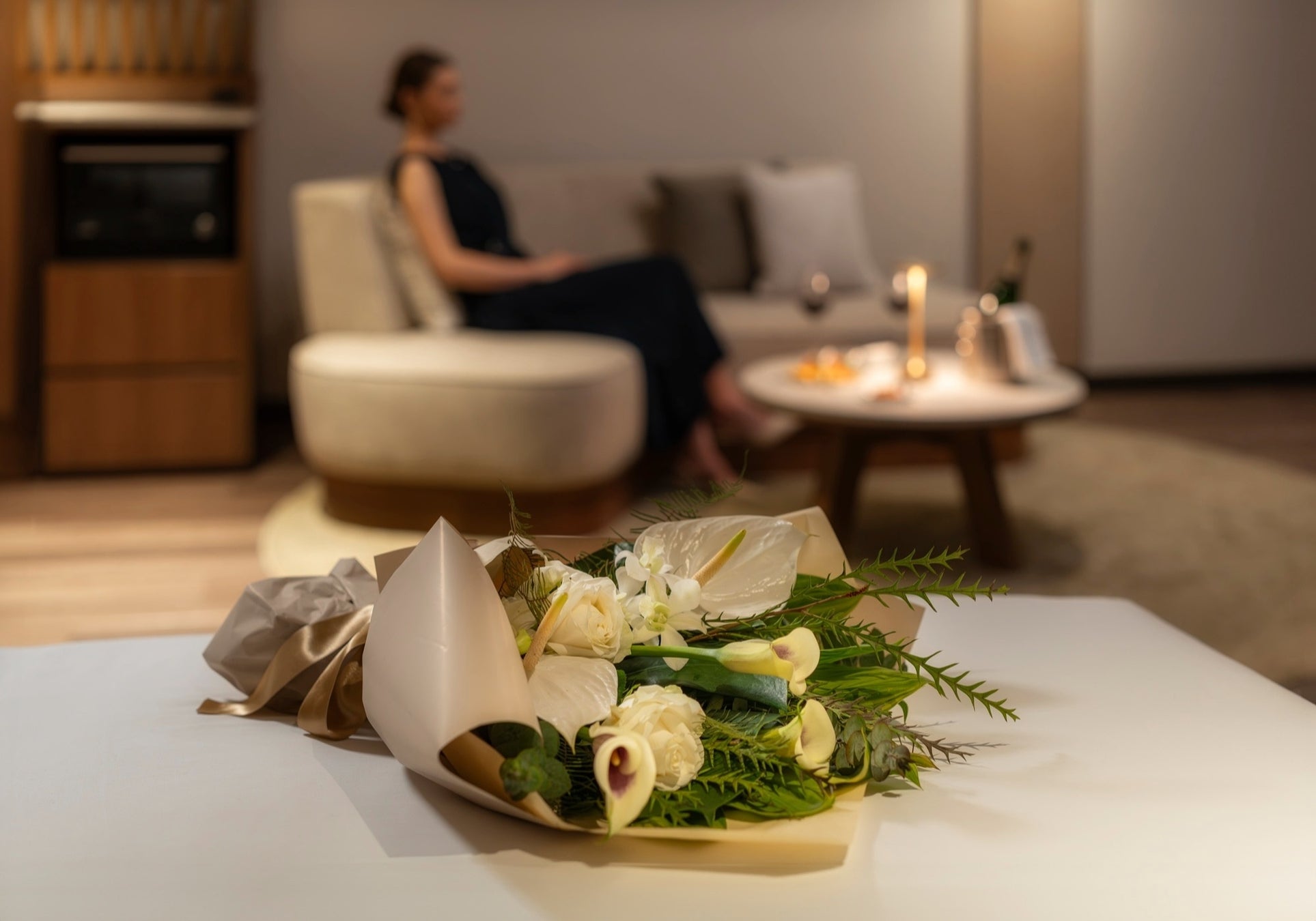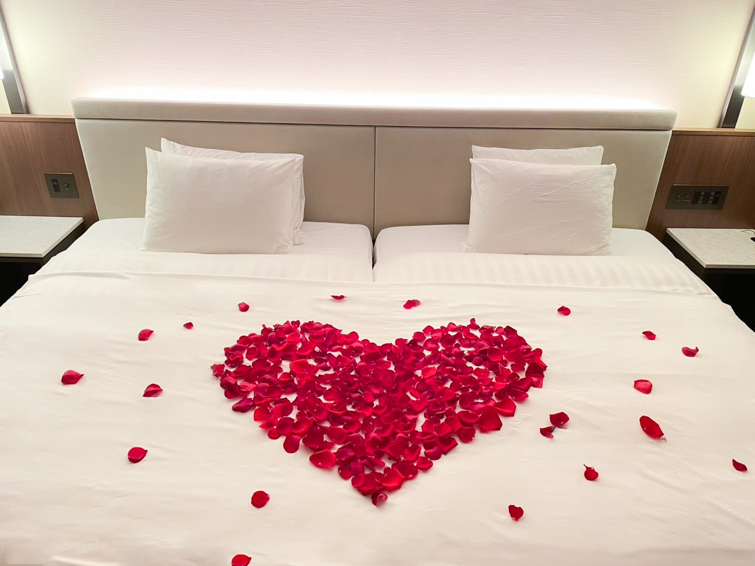 さらに、追加オプションとして、客室を華やかに彩るフラワーベッドやホールケーキのご注文など、記念日に華を添える演出もご利用いただけます。