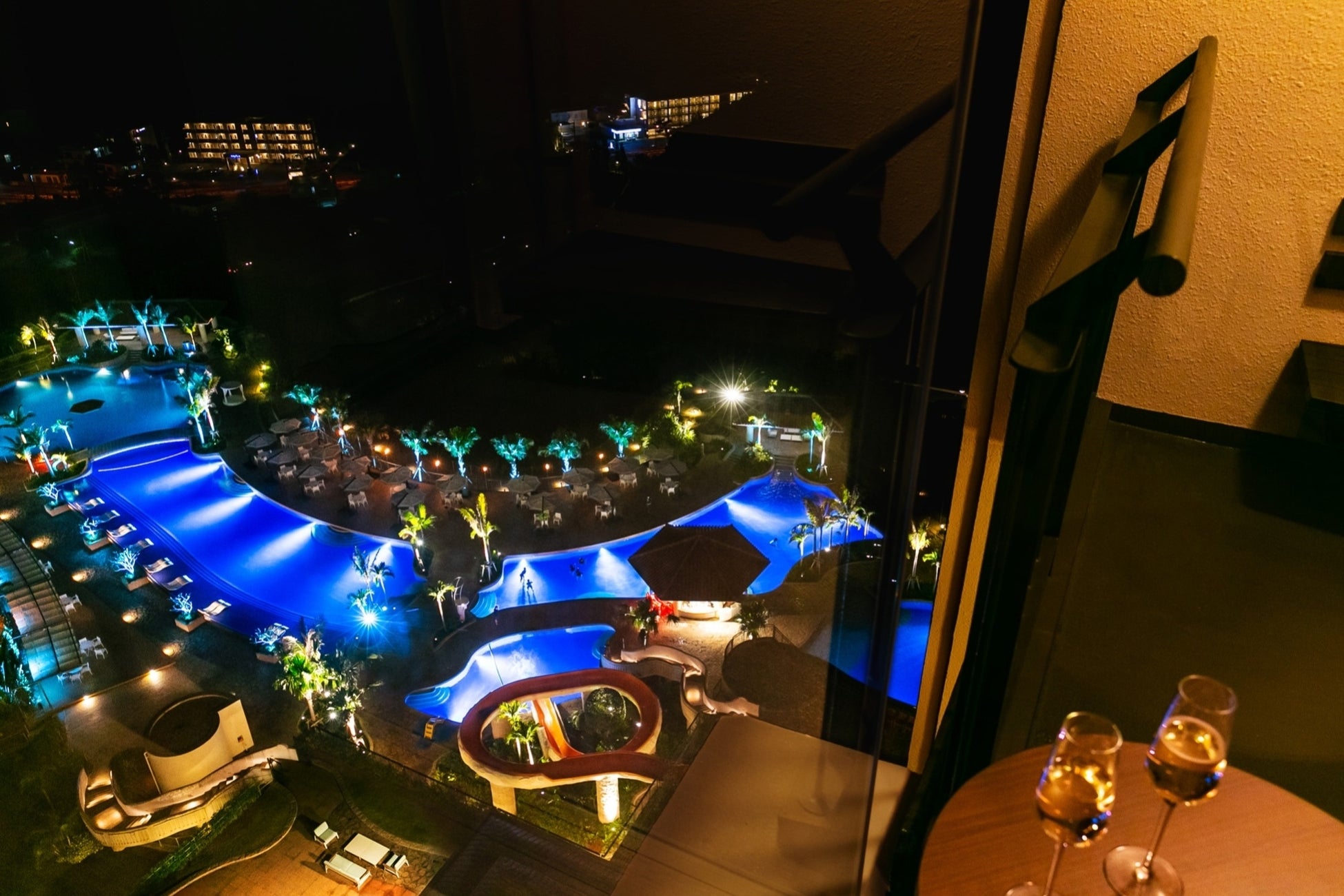 今回対象となる客室は、パノラマオーシャンスイート・プレミアム、パノラマオーシャンスイートの2つのカテゴリーの限定9室で、お部屋には花束とスパークリングワイン、カットフルーツをご用意しています。緑豊かなやんばるの山々と東シナ海を一望できるお部屋でおくつろぎいただいた後は、レストラン「ブッフェ&グリル クワッチー」の特別なコースディナーへご案内。食後は、クラブラウンジにて、アルコールや軽食とともにリラックスタイムをお過ごしください。