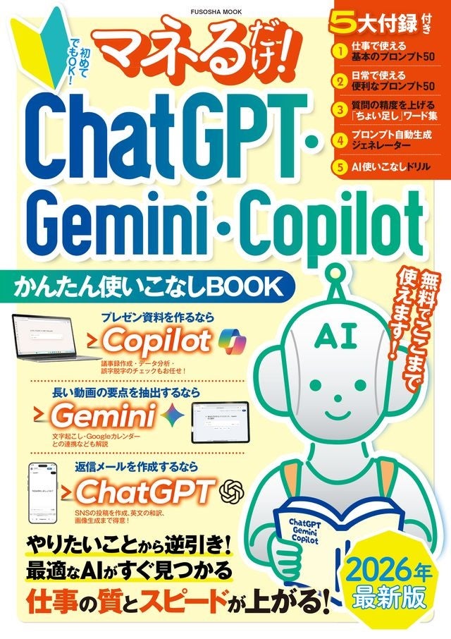 【2026年度最新版 5月2日発売】初心者のための最初の一歩!『マネるだけ! ChatGPT・Gemini・Copilot かんたん使いこなしBOOK』で仕事も日常も進化させる