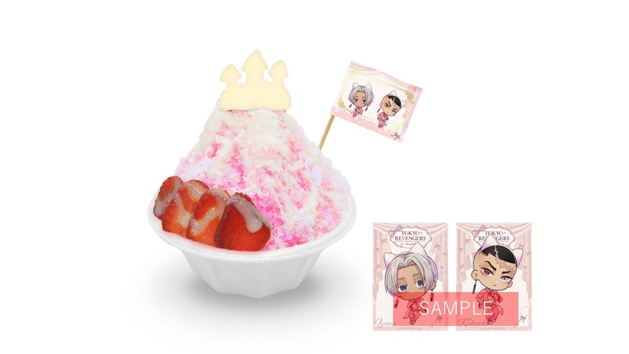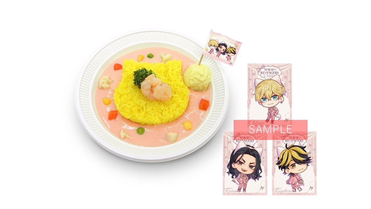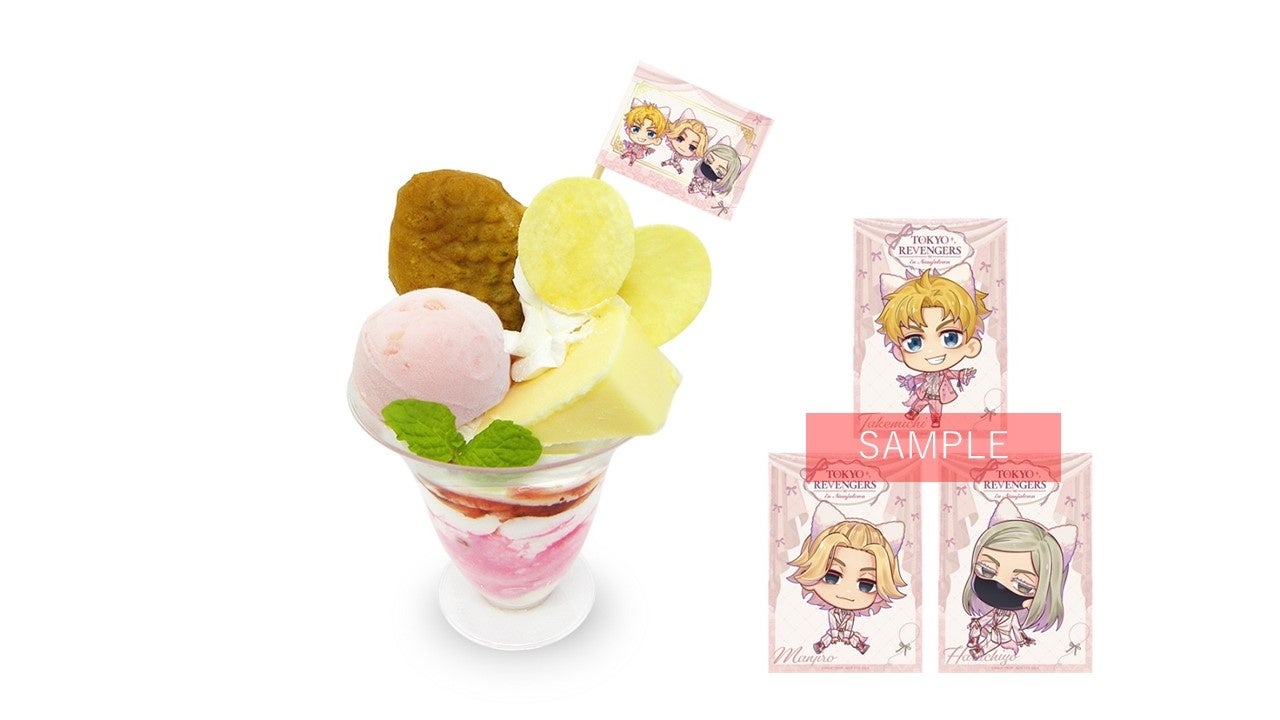 TVアニメ『東京リベンジャーズ』の作品やキャラクターをモチーフにした、ピンク色のオリジナルデザート&フードを販売します。対象メニューには各メニューにひもづいた絵柄の「イラストシート」が1枚付属します。(イラストシートの種類が複数あるメニューは好きな絵柄が選べます。)