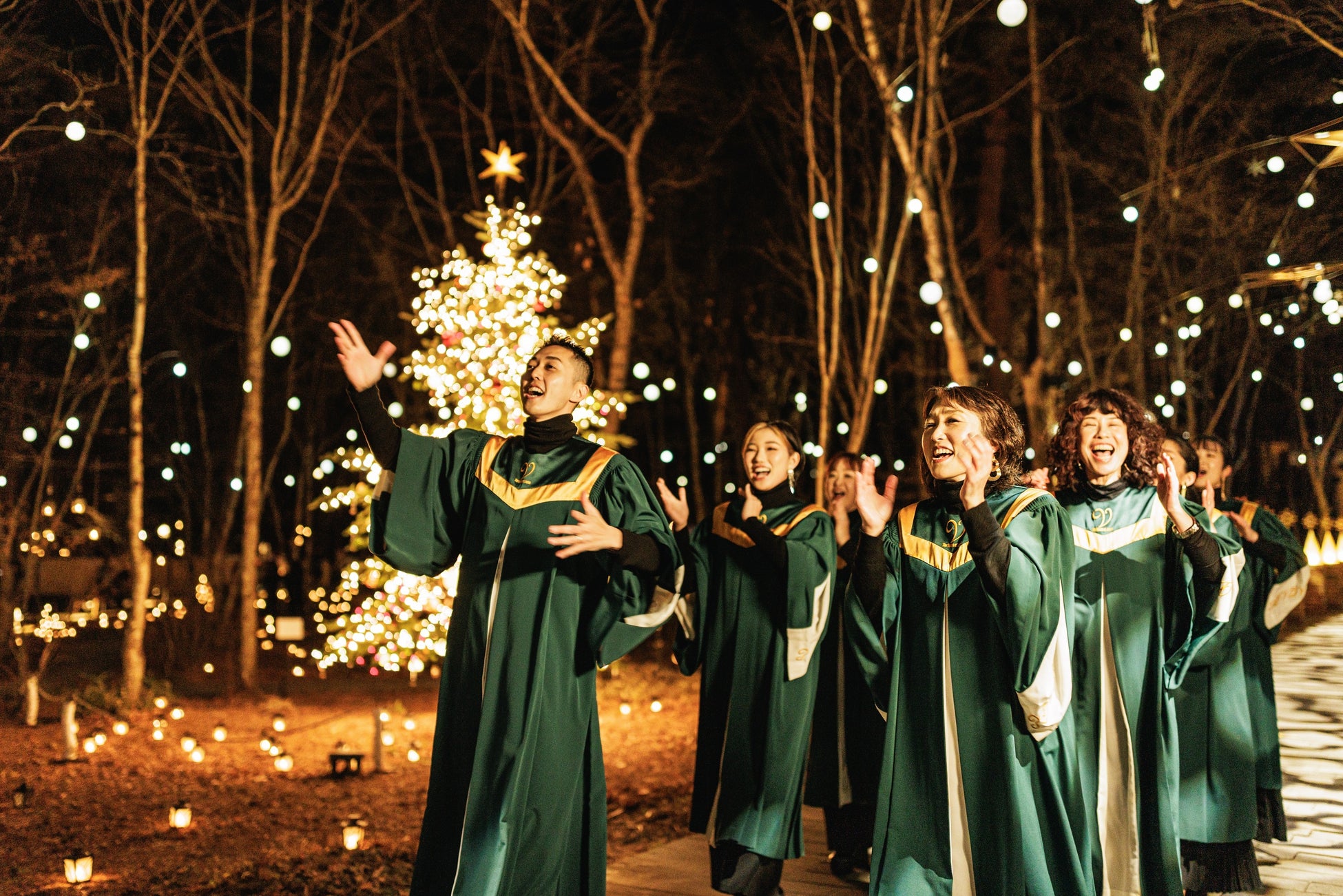 日曜日と24日、25日には、星空の下、音楽を通して大切な人の幸せを願う「Harmony of wishes」を行います。その中の一曲、「Happy Xmas」(John Lennon&Yoko Ono)は、「大切な人が幸せでありますように」という願いとともに、平和な世界を願うメッセージが込められた楽曲です。星降る森に、あたたかな歌声が響きます。