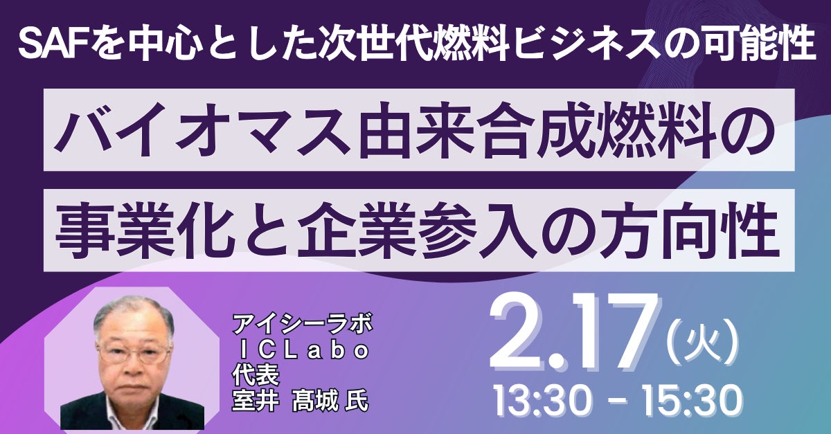 JPI(日本計画研究所)は、アイシーラボ ICLabo 代表 室井 髙城 氏を招聘し、バイオマス由来合成燃料の事業化と企業参入の方向性について詳説いただくセミナーを開催します。