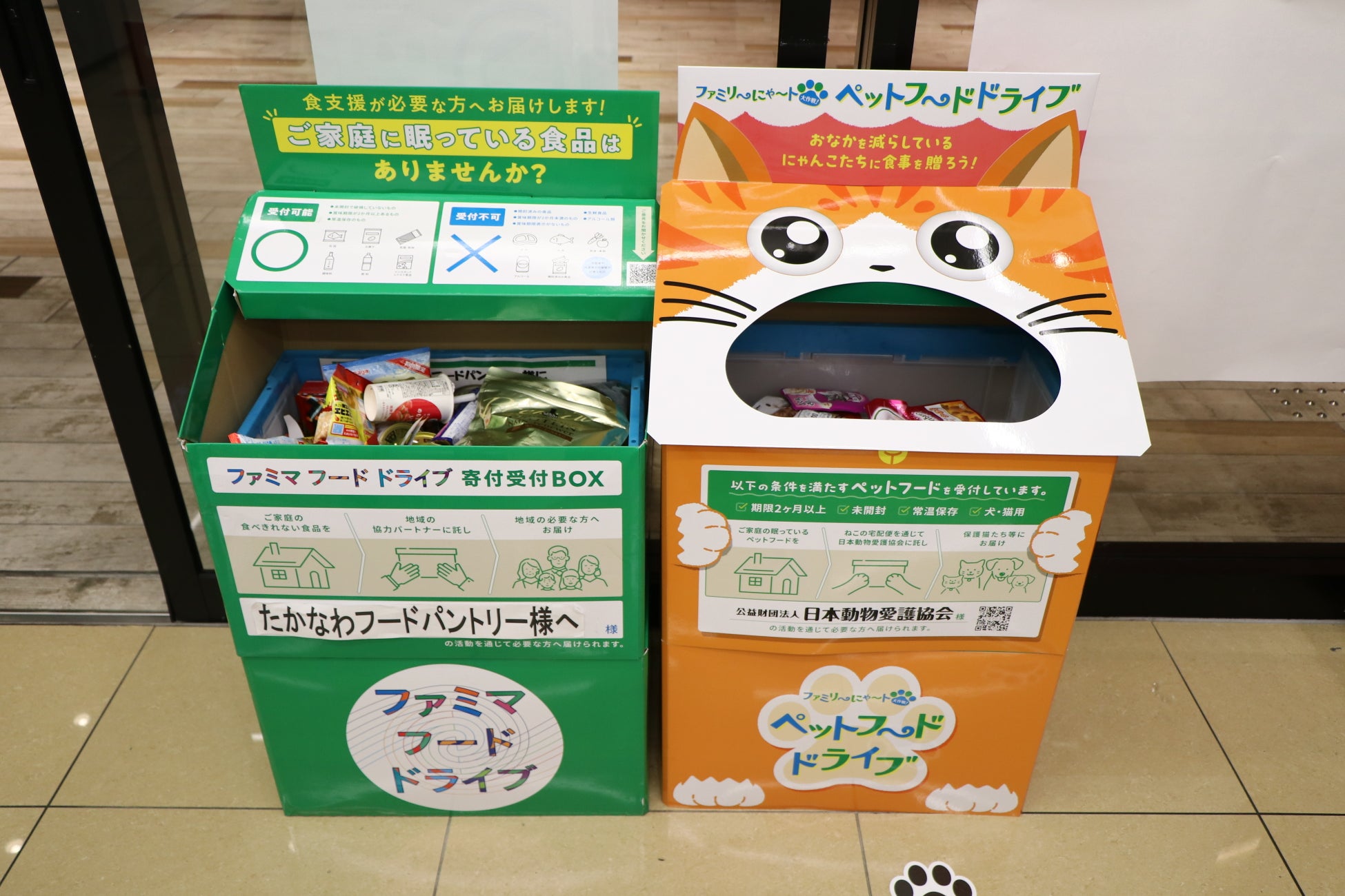 設置から3日間で、既に数多くのご家庭に眠っているペットフードをファミリーマート店舗にお寄せいただいております。集まったペットフードは、公益財団法人 日本動物愛護協会に寄贈させていただきます。