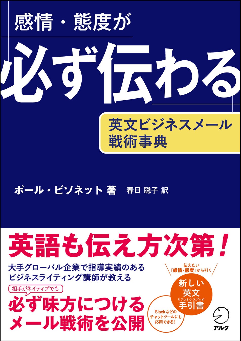 「言いたいことは書けたけど、うまく伝えられていないなあ…」。英語でメールを書いたことのある日本人であれば、多くの人が経験する悩み。日本語のコミュニケーションと同様、英語も伝え方次第です。トヨタ自動車やJAXAといった大手企業や、東京外国語大学での指導経験があるビジネスライティング講師のポール・ビソネット先生が書いた、そのような悩みを解決する一冊が登場します。