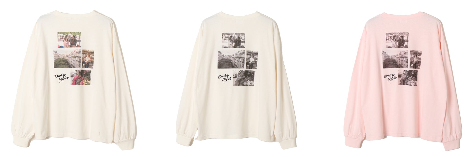 今回のコラボレーションでは、アパレルアイテムから生活雑貨まで幅広く7アイテムをラインアップしました。主演のエミリー・クーパーのシーンで印象的なフォトをデザインしたTシャツをはじめ、本作のイメージアートをモチーフにしたワンピースやドラマのタイトルロゴをプリントしたトートバッグやマグカップを展開いたします。