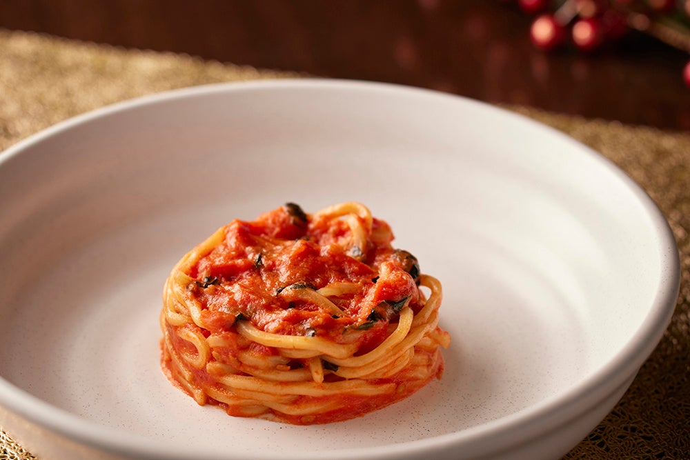 2025年のフェスティブシーズンにご用意するのは、オマール海老や国産牛サーロイン、フォアグラやトリュフといった、この時期ならではの贅沢な食材を盛り込み、優美で洗練されたスタイルに仕上げた「Scarpetta Natale 2025」。さらにニューヨーク本店から受け継ぐシグネチャーのトマトバジルスパゲッティも組み込み、伝統と革新が調和する特別なコースです。