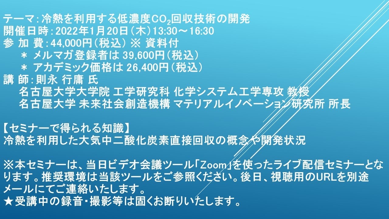 【ライブ配信セミナー】冷熱を利用する低濃度CO2回収技術の開発 1月20日(木)開催 主催:(株)シーエムシー・リサーチ