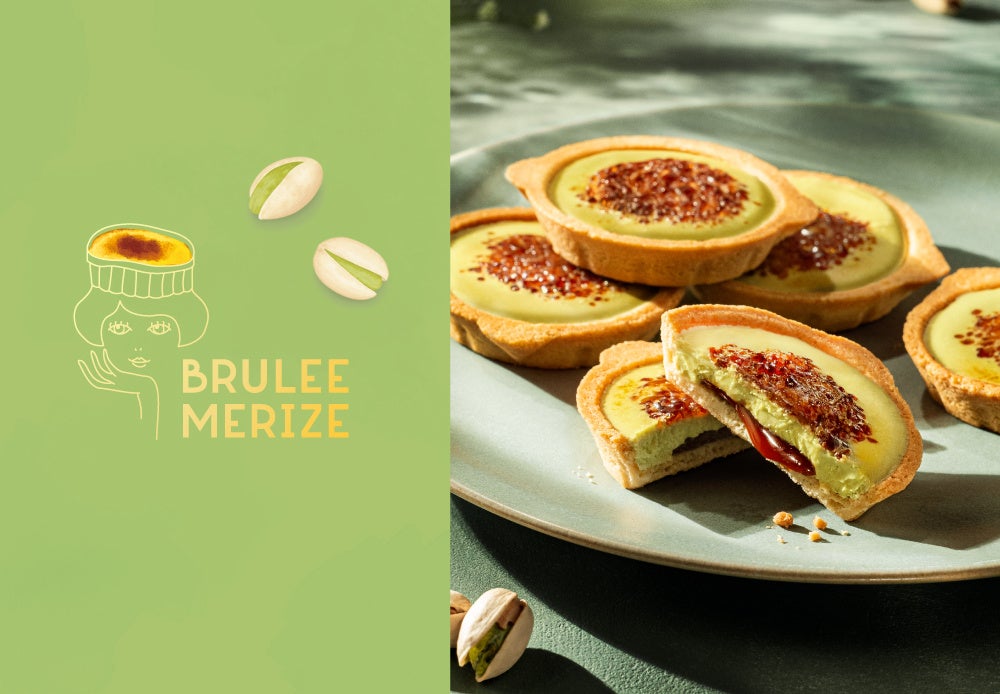 パリとろ食感が香ばしい代表作『ブリュレクリームタルト』がピスタチオ味に!芳醇なイタリア産ピスタチオペーストをたっぷり溶けこませたなめらかなクリーム。さくっと焼いたココットタルトに流し込み、直火でパリッと香ばしくブリュレしました。クリームの中に潜むほろ苦いキャラメルソースが隠し味です。“ブリュレ”というひと手間が、ローストピスタチオ本来の香ばしさをさらに美味しく高めた季節限定のピスタチオ味をどうぞお楽しみください。