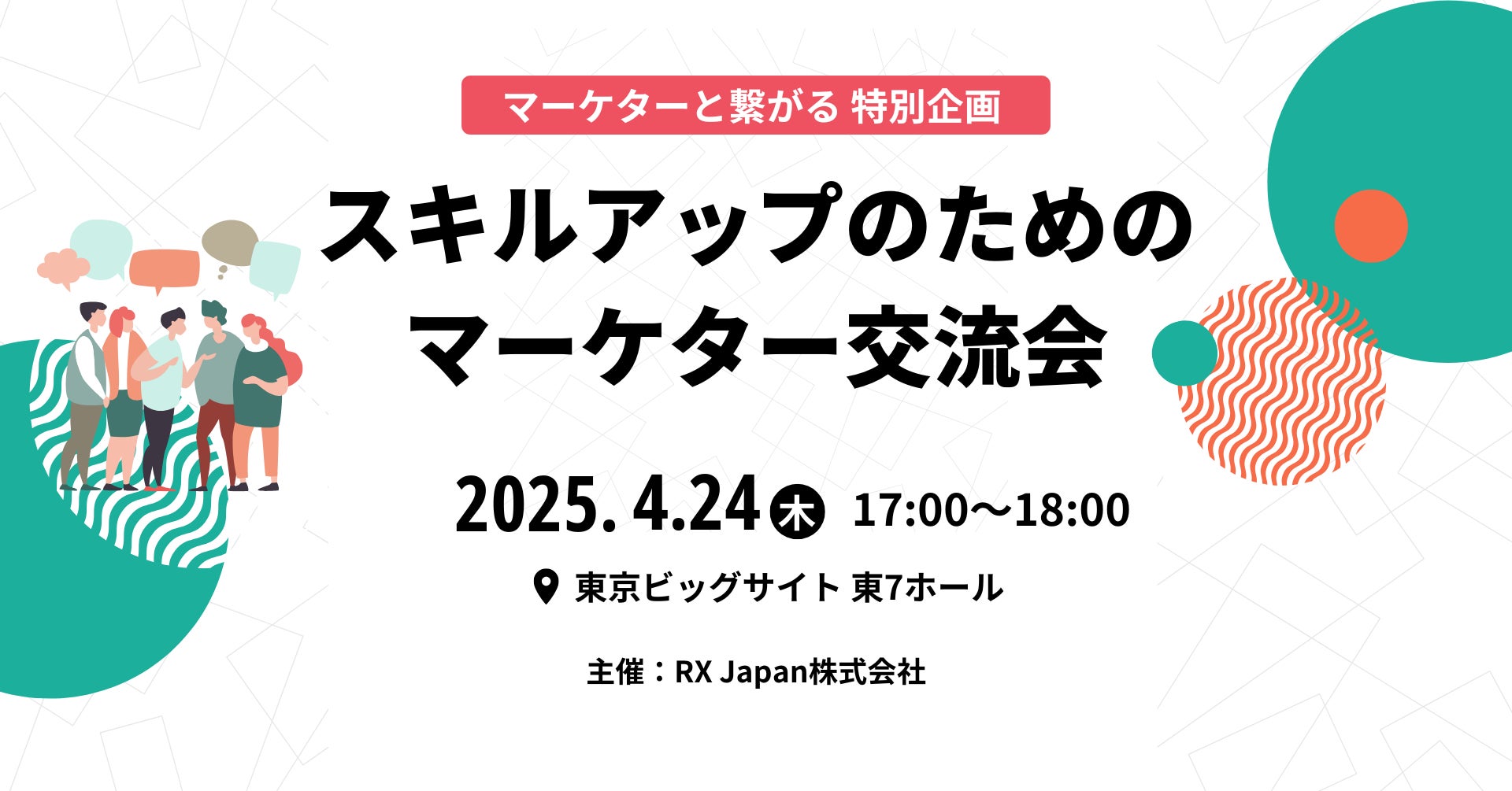 RX Japan株式会社(本社:東京都中央区、代表取締役社長:田中 岳志)は2025年4月24日(木)に、「スキルアップのためのマーケター交流会」を「営業・デジタルマーケティング Week 春 2025」内の特別企画として東京ビッグサイトで開催いたします。