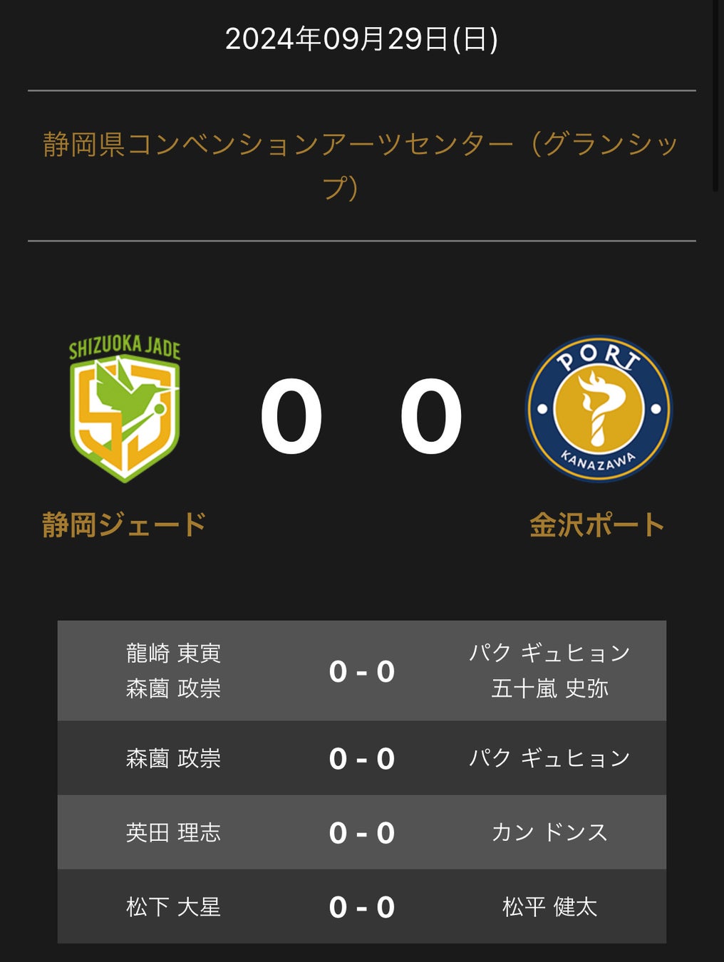 ノジマTリーグ 2024-2025シーズン 公式戦 9月29日開催の「静岡ジェード vs 金沢ポート」のオーダーを発表いたします。