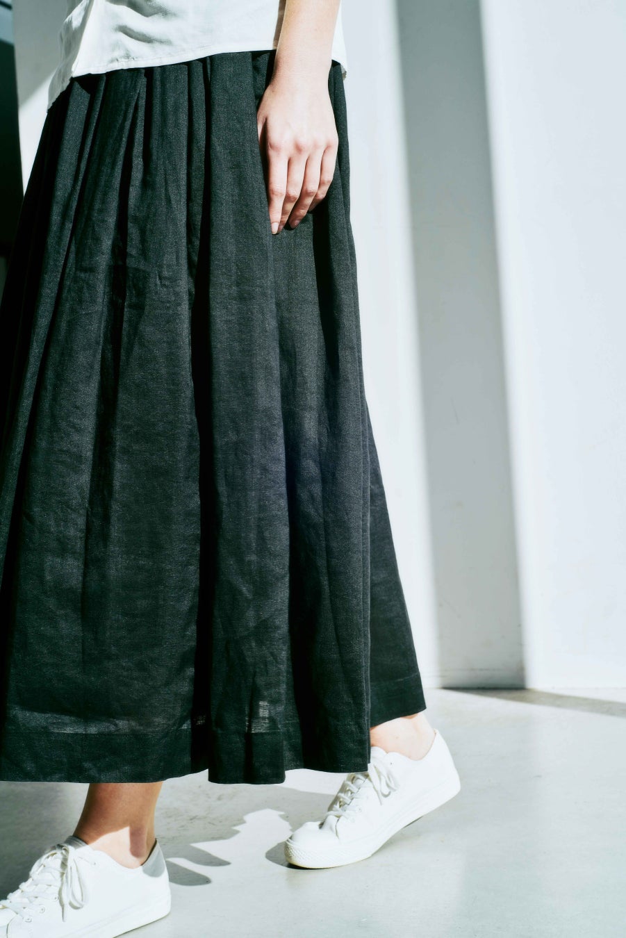 2025年春夏シーズンは、季節に適した天然素材や昔ながらの生産工程からできた素材などを活用したアイテムを展開します。主な天然素材として和紙やリネン・ラミーを使用したジャケットやスカート、リネンとシルクやリネンとコットンなど天然素材を合わせたブラウスやTシャツ、低速度で筒状に生地を編む旧式のループウィール編み機でつくられたスウェットやTシャツなどを展開します。また、タオルやエプロンなどの生活雑貨アイテムに加え、新たにシューズや帽子やバッグ、キャリーケースなどの服飾雑貨アイテムを展開します。