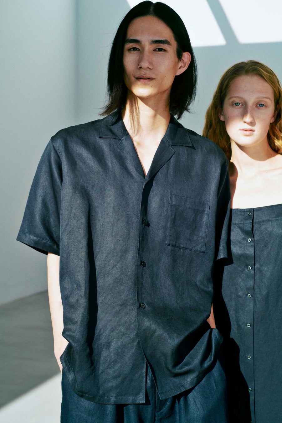 東アジアを中心とした産地で栽培されているイラクサ科の天然素材のラミーを使用しました。リネンよりも繊維長が長く、素材特有のハリ感と光沢感があります。吸湿・発散性に優れ、夏を快適に過ごすことができる、さらりとした着心地が特長です。
