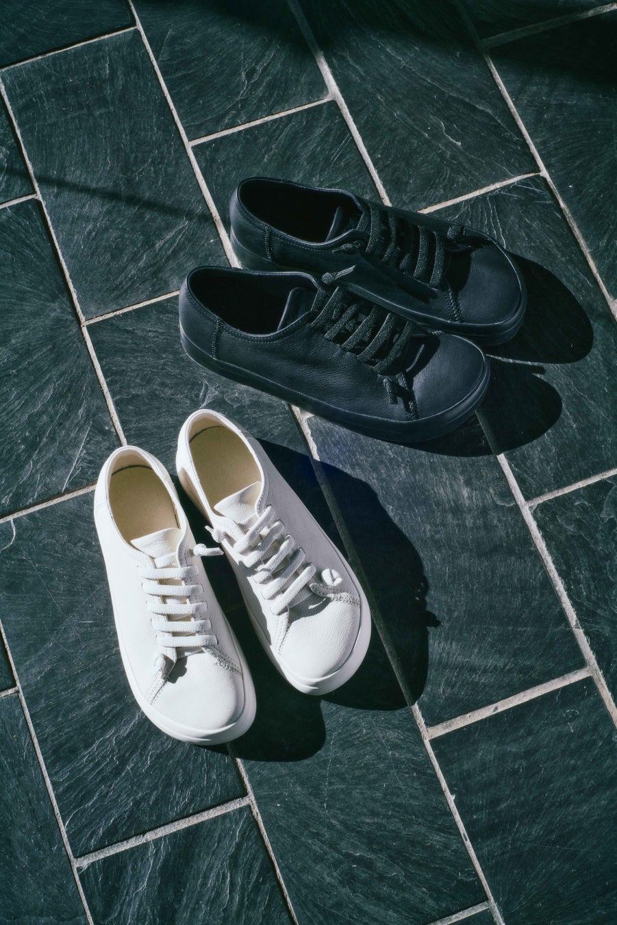 CAMPER(カンペール)と共同開発し、レザースニーカーを作りました。レザーは環境に配慮したLWG※認証レザーを使用しています。ゴムの弾力性や耐久性を向上させるバルカナイズ製法を採用したアウトソールは中空構造になっており、軽さと着地の衝撃を和らげる仕様にしています。また、つま先にはトゥカウンターを内蔵し足先を保護、かかと内側にはヒールカウンターを使用し、安定した歩行を促します。紐は脱ぎ履きやすいゴム素材にしています。