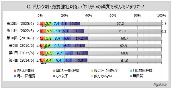 マイボイスコム株式会社(東京都千代田区、代表取締役社長:高井和久)は、12回目となる『ドリンク剤の利用』に関するインターネット調査を2025年6月1日~7日に実施し集めました。