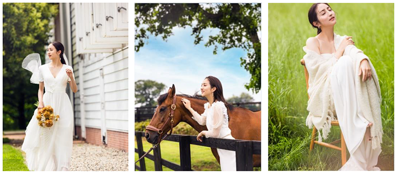 ■牧場の大自然の中で大人なウエディングドレス姿を披露!