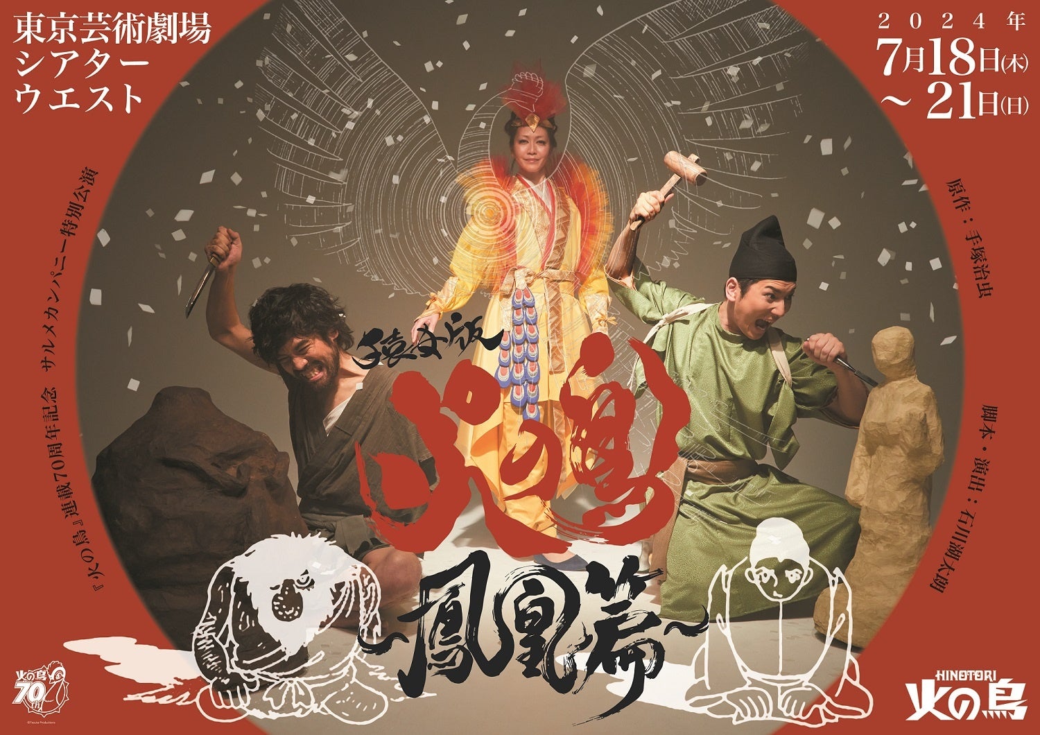 2024年7月18日(木)から21日(日)まで東京芸術劇場シアターウエストにて上演する、『火の鳥』連載70周年記念サルメカンパニー特別公演 『猿女版 火の鳥~鳳凰篇~』のメインビジュアル・キャスト情報・チケット販売情報が解禁となりました。