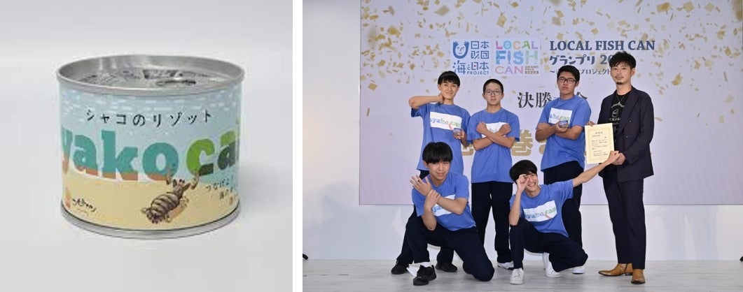 「syako can―シャコのリゾット―」は、「LOCAL FISH CANグランプリ2022」で特別賞(地域巻き込み賞)を受賞しました。寄島漁港(岡山県)で水揚げされたシャコを使用したリゾットです。海中の酸素や栄養分が不足していることから漁獲量が激減し、稀少食材となってしまったシャコの味を再び届けるため本缶詰を学校法人関西学園岡山高等学校の生徒たちが開発しました。