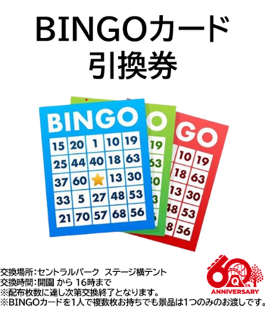 本イベントでは、大人から小さなお子様まで多くのお客様にビンゴカードを手に入れていただけるよう様々な条件でビンゴカードをお渡しします。指定条件を満たした写真を撮影し、園内の対象店舗にてフードやお土産品をご購入頂くとビンゴカードを獲得できます。夕方からは中央広場セントラルパークにて、「富士急ハイランド ペアフリーパス」や「ふじやま温泉」など富士急グループ施設の招待券をはじめ、人気の「ゲーム機」や「ゲームカセット」など豪華景品が当たる「大ビンゴ大会」を開催します。ビンゴ当選後に景品を決めるくじ引きをしていただくため、最後まで全員にチャンスがあるドキドキのビンゴ大会となっております。