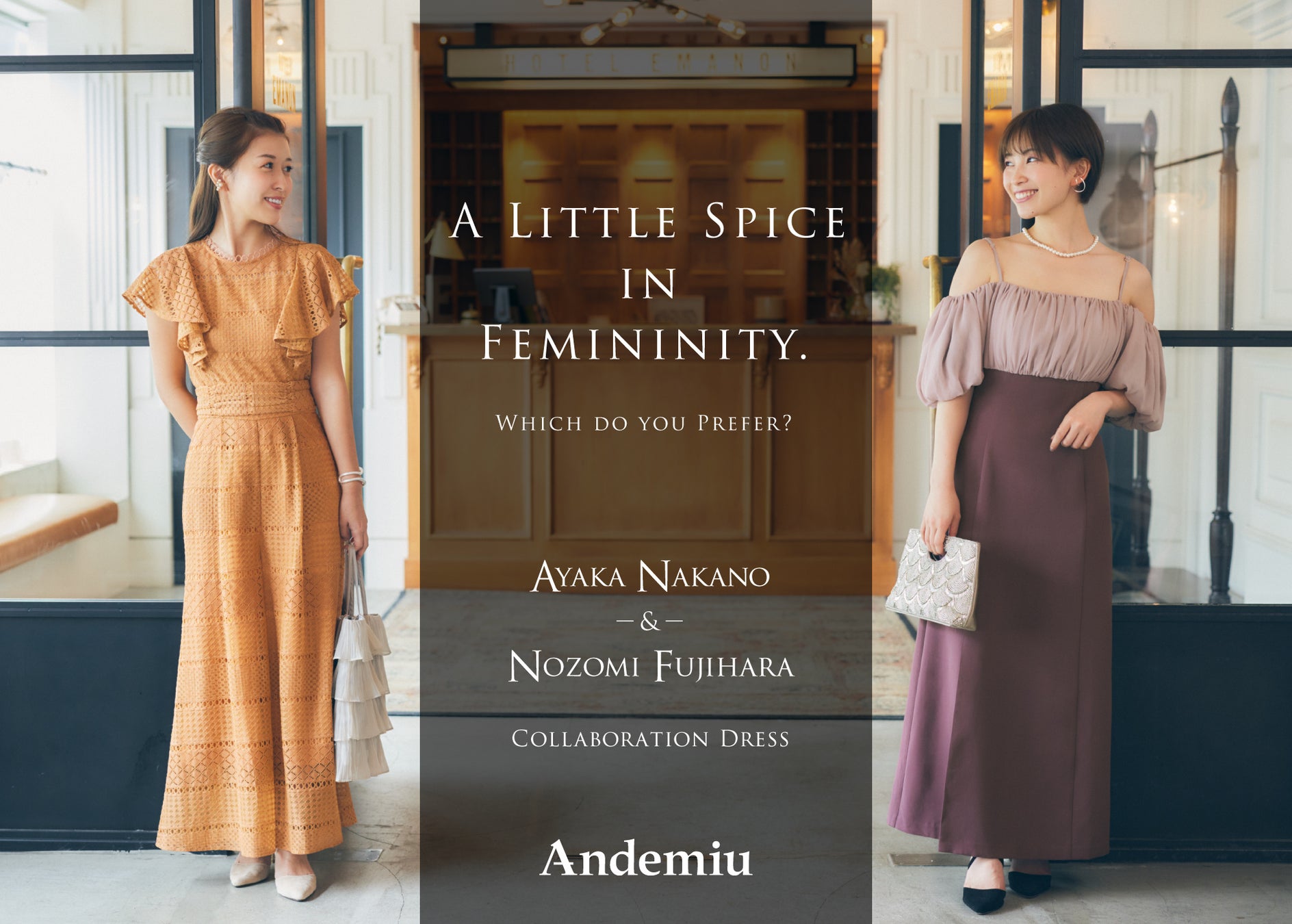 Andemiuは、ブランドのターゲット層である20代後半~30代女性の恋愛観や美に着目し、Amazonプライム・ビデオにて配信されている人気番組BACHELOR Season4に出演していた、まつげ&ネイルサロン経営者でもある起業家の中野 綾香さんとのコラボレーションを2022年5月に実施しました。今回、第2弾として、スペシャルゲストに良き戦友でもある、美容鍼灸師やタレントなどマルチに活躍中の藤原望未さんを迎え、お二人の絶対的女性観から生まれた、特別な日に着たいオケージョンウエアが誕生いたしました。