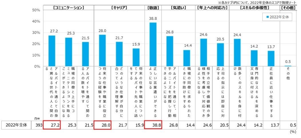 ※ベース:現在アルバイト就業中の大学生(2022年で降順)