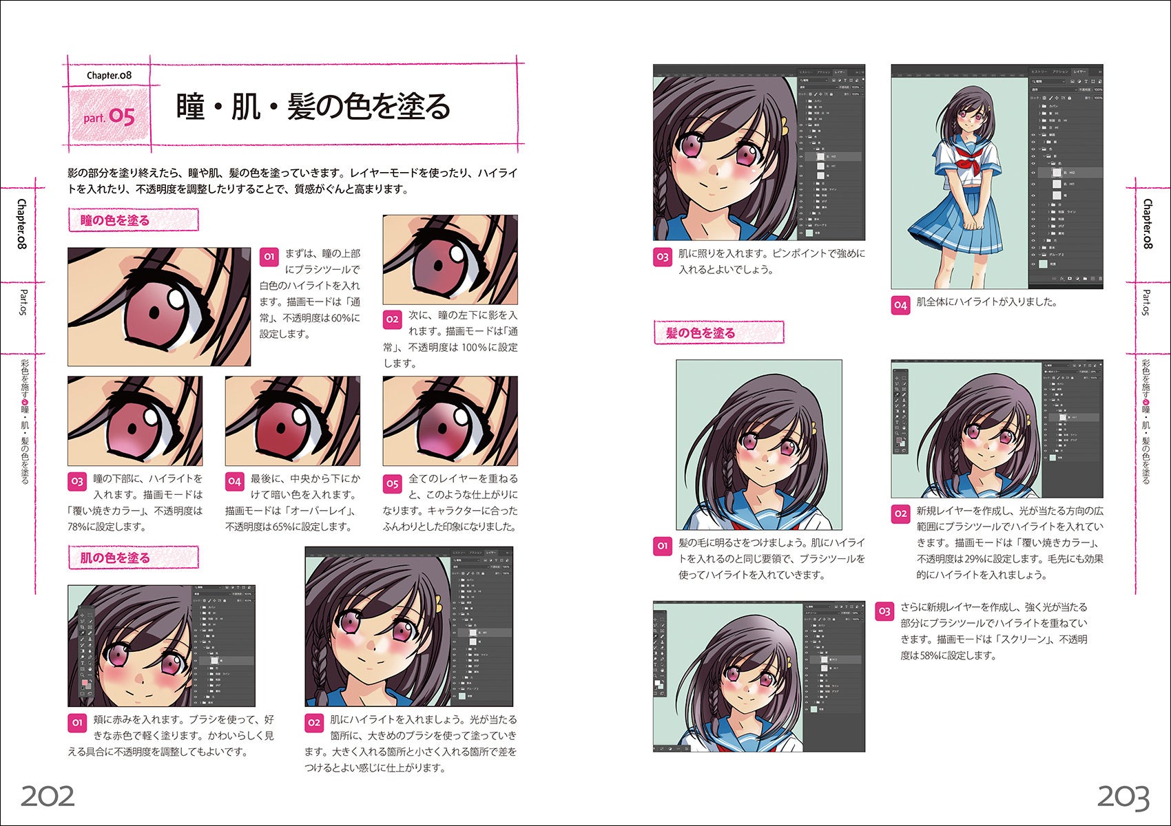 正面・横・斜めから見た顔の表情の描き方から、真面目キャラや萌えキャラなどいろいろなキャラクターの描き分けや、「照れ隠し」「甘える」「拗ねる」など喜怒哀楽の微妙な心理描写の表現まで紹介した1冊です。