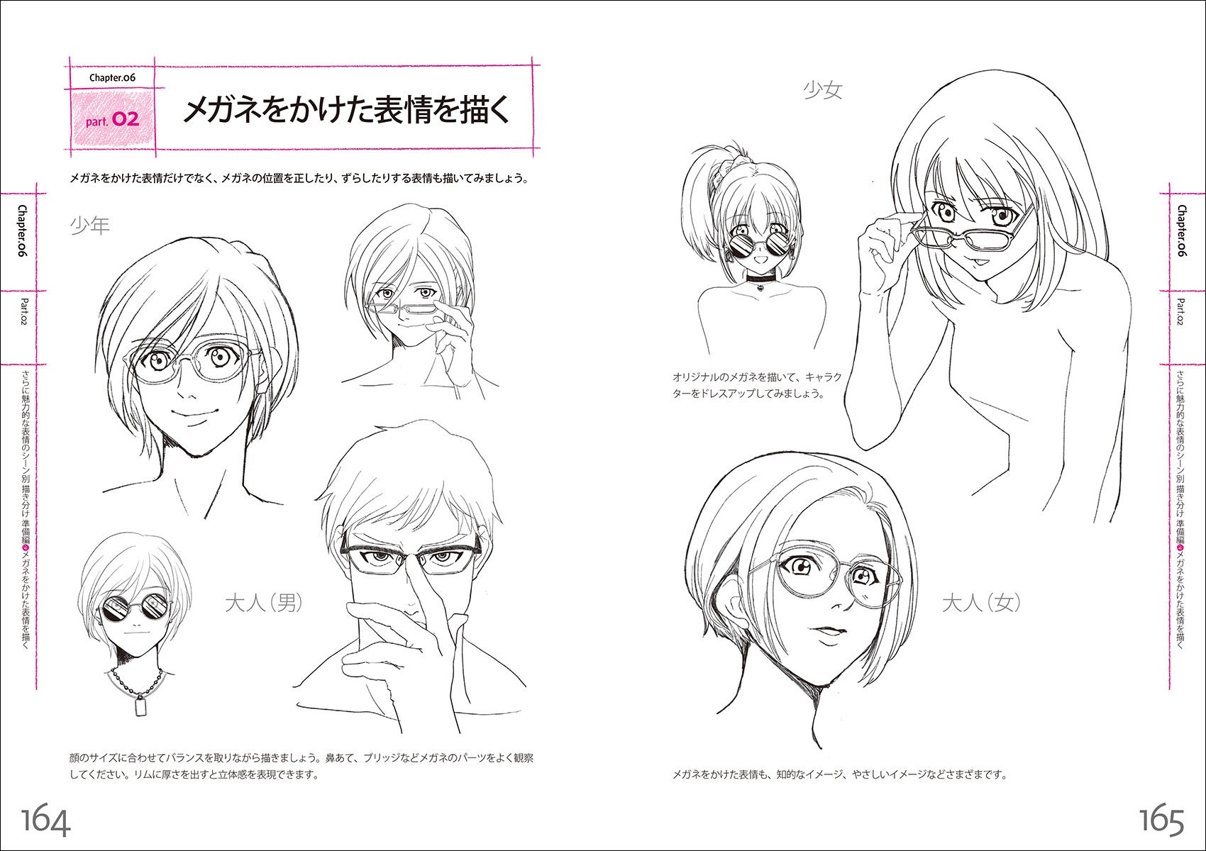 増補改訂版では、本書に登場する大人の男女、少年少女の4人のベーシックなキャラクターをもとに、ヘアスタイルやアクセサリーなどのアレンジも楽しめる「さらに魅力的な表情のシーン別 描き分け」を32ページ追加。