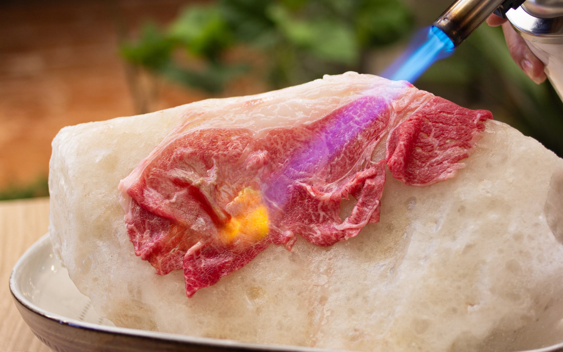 ② 九州産A4黒毛和牛の岩塩炙り / ワゴンサービスで提供