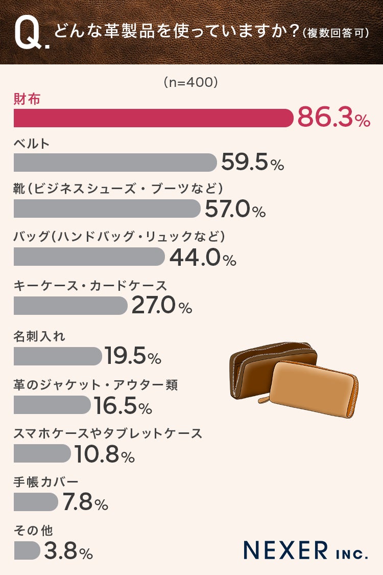 ■86.3%が、普段使っている革製品の物は「財布」